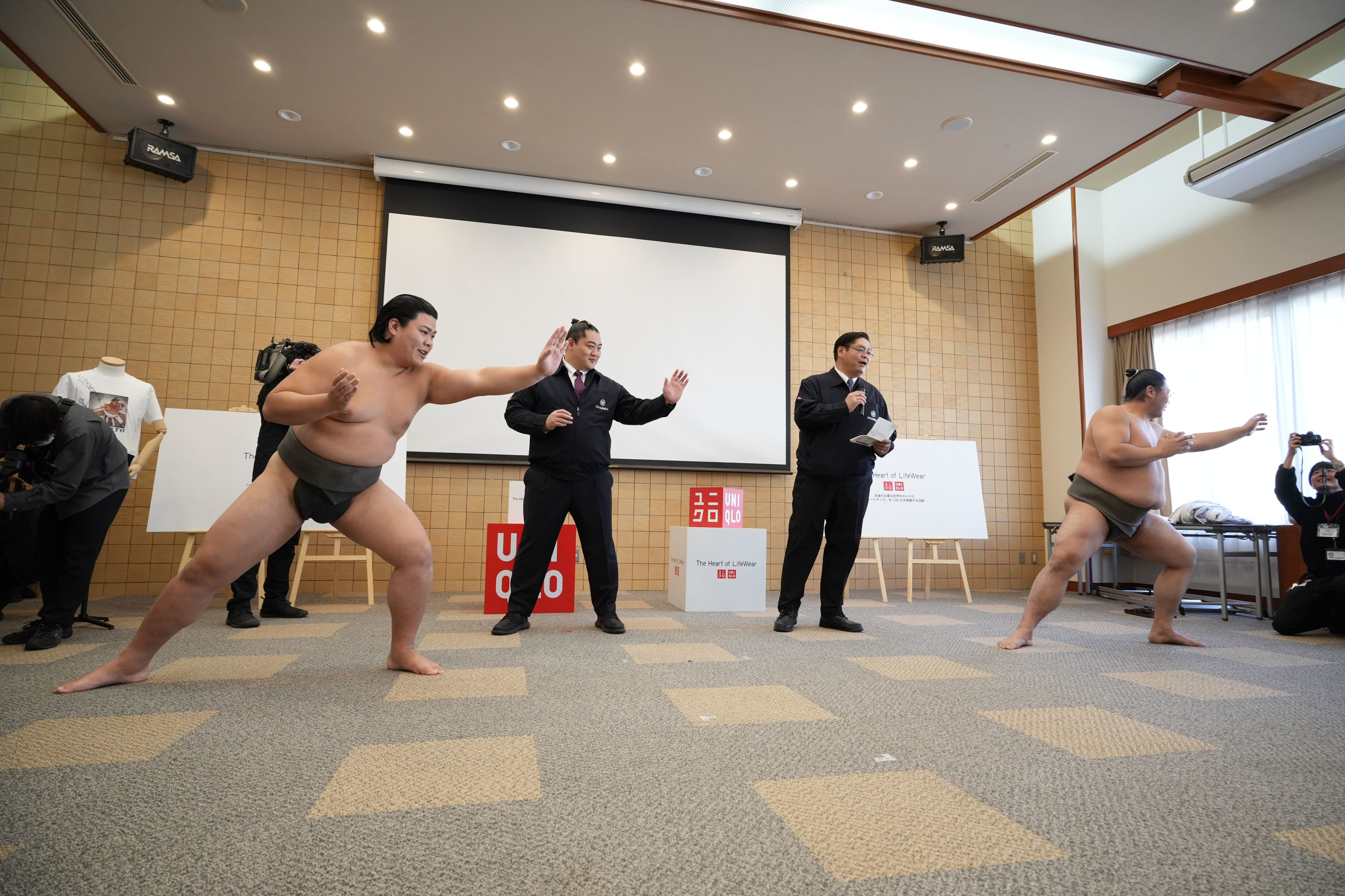 ユニクロが石川出身親方・力士とともに被災地を訪問